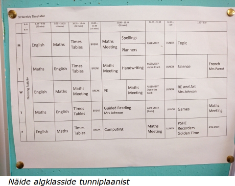 Kolmel päeval vaatlesid kursusel osalejad piirkonna koolides erinevaid ainetunde nii nooremas kui vanemas kooliastmes. Kohalikud lapsed olid õpihimulised, tunnid õpetajate poolt metoodiliselt hästi üles ehitatud. Silma jäi see, et koolides oli rohkem meessoost õpetajaid, eriti algklassides. Nagu ikka, kannavad inglise lapsed enamus koolides koolivormi ning on pikal vahetunnil õues lustimas sõltumata ilmast. Märkamata ei jäänud ka see, et Inglismaa koolides ei käi lapsed vahetunnis kooli territooriumil ringi telefonid käes, see ei ole lubatud. Lubatud ei olnud isegi korraks telefoni kätte võtta ja hetkeks vaadata. Kooli välisuksest tänavale astuda enne koolipäeva lõppu võib vaid vanema kirjaliku tõendi alusel ja seda reeglit järgiti väga rangelt mitte ainult algklassides, vaid ka vanemates klassides. Väljas saab käia vaid siseõues ja see on kõrge taraga piiratud. Rääkides probleemidest Inglismaa hariduses tõdeti, et need on sarnased nagu igal pool mujal – heade spetsialistide puudus, koolide rahastamine, õpetajate palk, suur töökoormus jms.