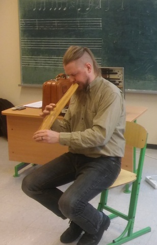 Reedel, 9. märtsil, oli meil külas pärimusmuusik Juhan Suits, kes on üks Eesti rahvapäraste puhkpillide mängijatest. Saime kuulata Eesti torupilli, sarvepilli, vilesid ja parmupille. Iga pilliga kaasnes ka väike tekkelugu ja muusikapala. Juhan Suits mängib Eesti-Ukraina ansamblis Svjata Vatra ja töötab puhkpillide lektorina.