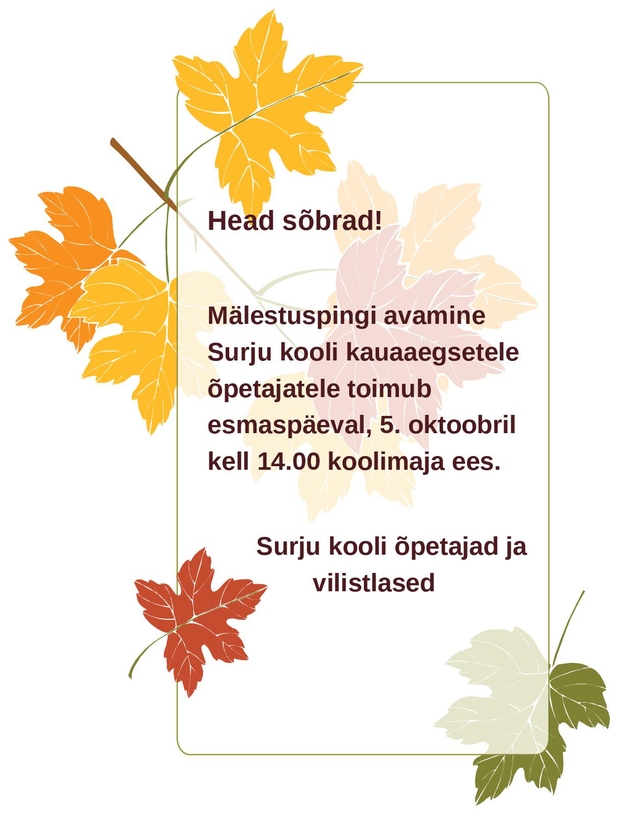 Eelmine artikkel: Surju kooli juures avati 5. oktoobril pink endistele kauaaegsetele õpetajatele