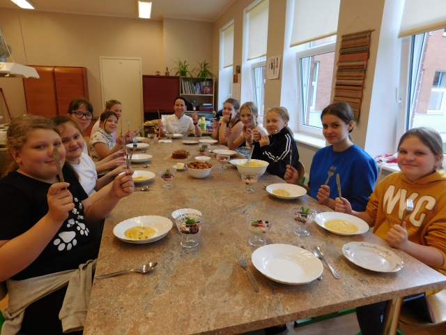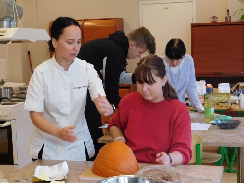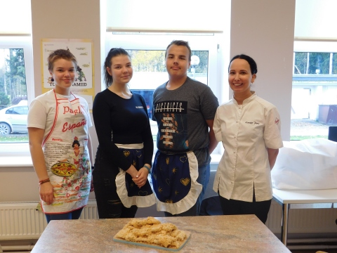 Meie koolil käis15. oktoobril külas Pärnus kesklinna restoranis peakokana töötav Karolyn Perle, kes võitis 2017 aastal Silverspoon Noore Koka konkursi ja sai võimaluse end täiendada ja õppida Soome Michelin- tärniga restorani legendaarse peakoka Pekka Teravä käe all. Kodunduse tundides valmisid Karolyn Perle juhendamisel maitsvad toidud: kõrvitsapüüreesupp, kamavaht, karask ja krõbedad kalapalad. Toit maitses suurepäraselt.